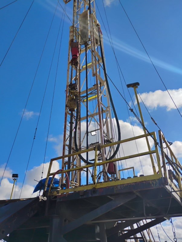 We just passed the 4300 feet deep mark this morning and are drilling ahead. Yesterday we cut through the fault right where we expected to and got some good oil fluorescence in the drilling cuttings on the upthrown side. Later in the day we saw free standing oil to the surface in the cuttings as well. These are very good signs during the drilling process and will be correlated with our other tools and tests once the well is drilled!